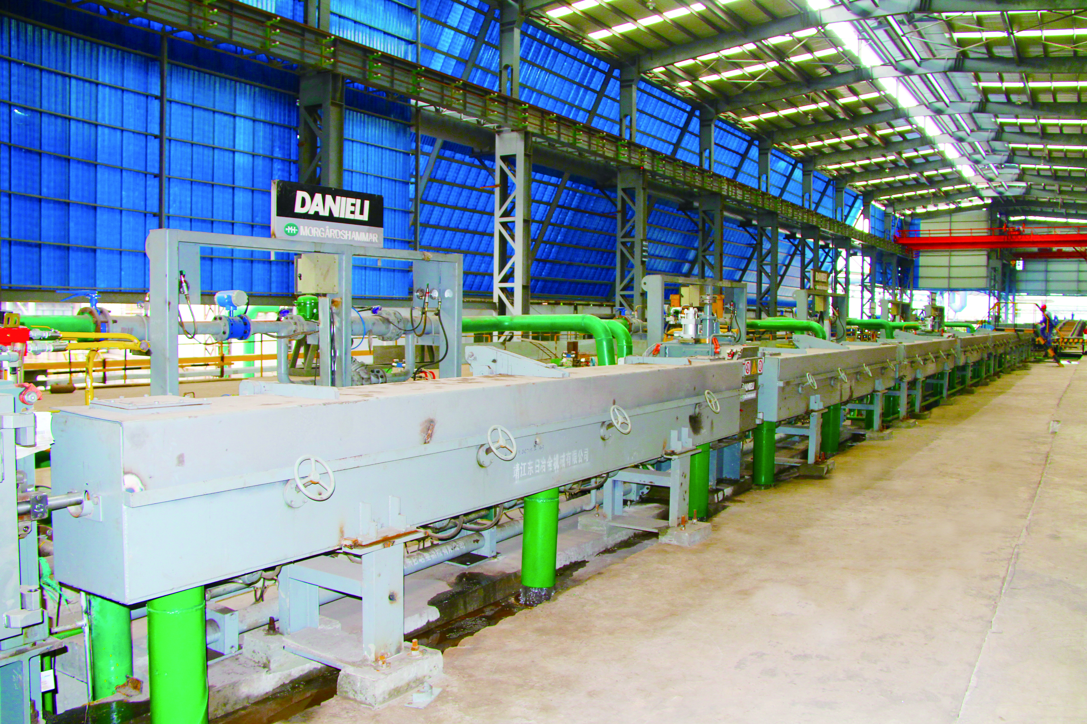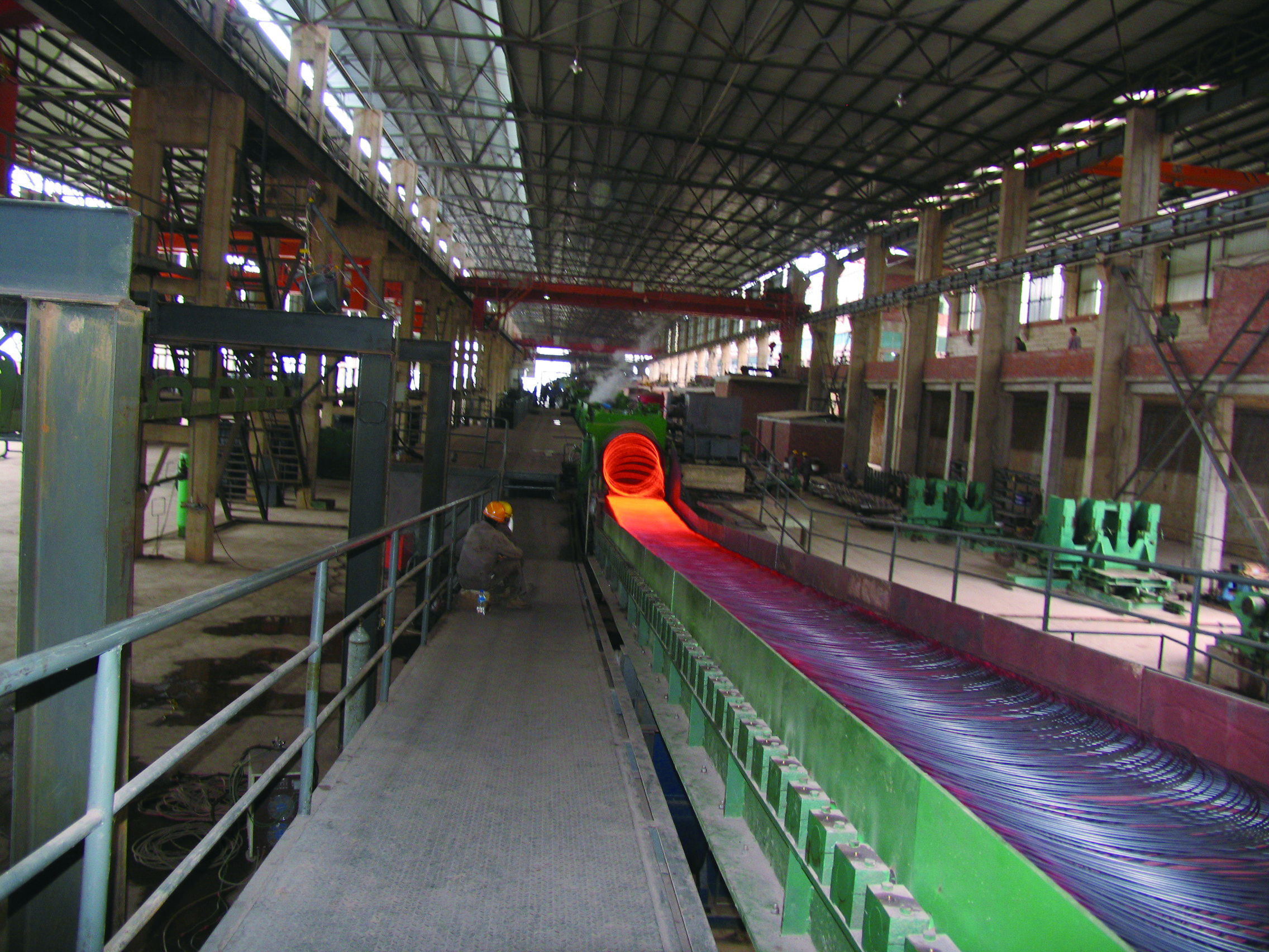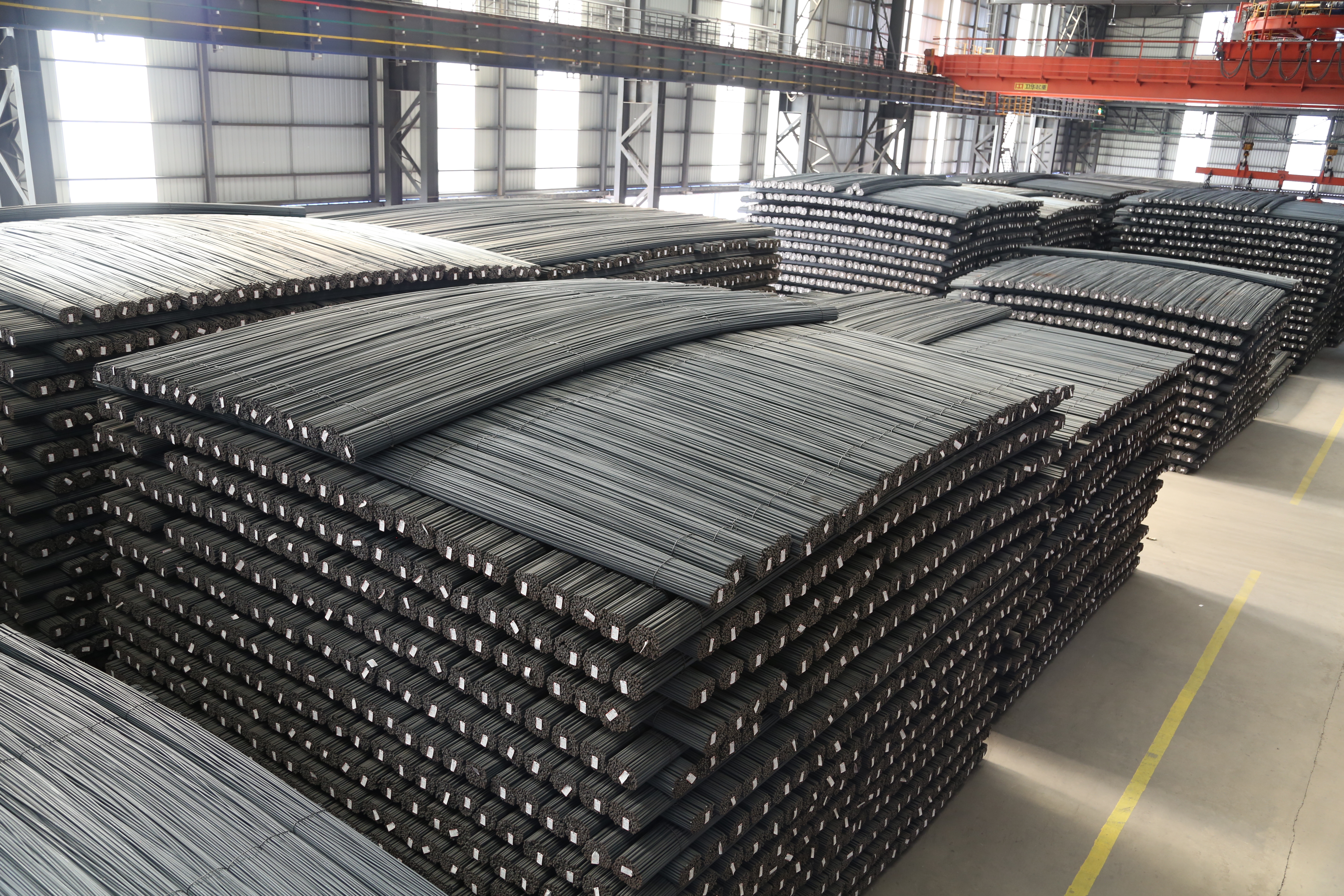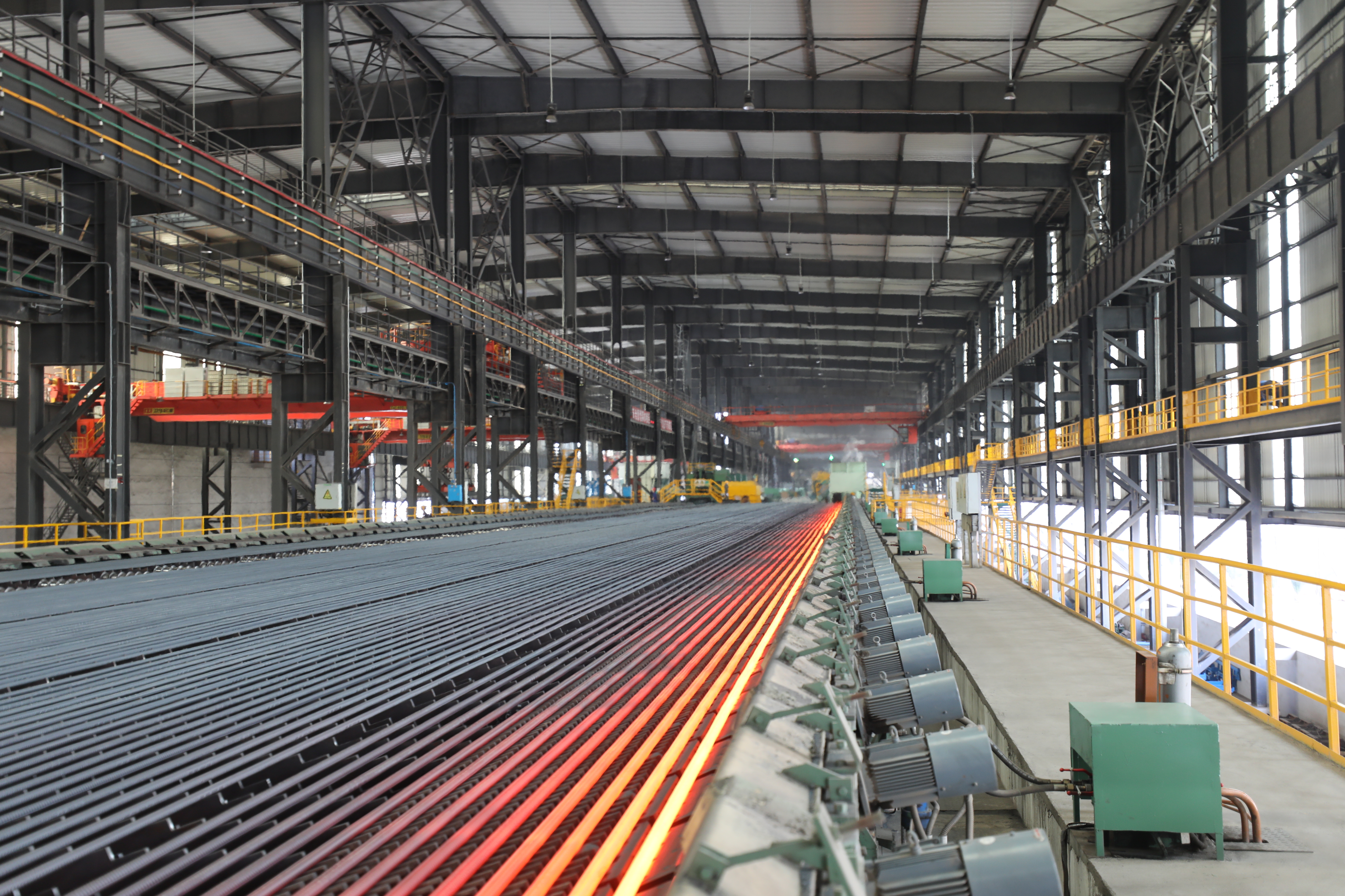 軋鋼廠現有生產設備,整體裝機水平在國內同類軋機中處于領先地位,線材采用先進工藝引進意大利達涅利公司制造的精軋懸臂式 45°軋機八臺、懸臂式 45°減定徑三臺、吐絲機一套,德國西門子制造打捆裝置二套等;帶鋼廠采用自動打包機及自動噴號機械手等裝置,使全線實現自動化控制,從而提高全線生產及管理水平。產品品種多,主導產品有棒材、線材、熱軋中寬帶鋼三大類,棒材可軋制牌號HRB400、HRB500、HRB400E、HRB500E、HRB600,Φ12mm、Φ14mm、Φ16mm、Φ18mm、Φ20mm、Φ22mm、Φ25mm、Φ28mm、Φ32mm、Φ36mm、Φ40mm、Φ50mm等12個規(guī)格鋼筋混凝土用熱軋帶肋鋼筋。線材可以采用普通熱軋工藝、超細晶粒軋制工藝生產規(guī)格Φ6mm、Φ8mm、Φ10mm、Φ12mm,牌號Q195、HPB300 及 HRB400、HRB500、HRB600、HRB400E、HRB500E 鋼筋混凝土用熱軋光圓鋼筋及鋼筋混凝土用熱軋帶肋鋼筋。帶鋼生產品種為碳素結構鋼及優(yōu)質碳素結構鋼 Q195、 Q235、Q355、08A、10、20、45、45Mn 及特種鋼,生產厚度:1.2~12.7mm 、寬度:500~850mm 。全系列高性能抗震鋼筋,碳素結構鋼及優(yōu)質碳素結構鋼、焊接用鋼、拉絲鋼等系列工業(yè)線材品種鋼等中寬帶鋼產品。